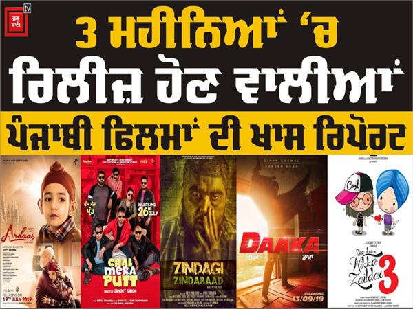 ਜਲੰਧਰ (ਬਿਊਰੋ) - ਸਾਲ 2019 ਦੇ 6 ਮਹੀਨੇ ਮੁਕੰਮਲ ਹੋ ਚੁੱਕੇ ਹਨ। ਇਨ੍ਹਾਂ 6 ਮਹੀਨਿਆਂ ਦੇ 26 ਹਫਤਿਆਂ 'ਚ ਹੁਣ ਤੱਕ 31 ਦੇ ਕਰੀਬ ਪੰਜਾਬੀ ਫਿਲਮਾਂ ਰਿਲੀਜ਼ ਹੋ ਚੁੱਕੀਆਂ ਹਨ। ਪੰਜਾਬੀ ਫਿਲਮਾਂ ਦੀ ਇਹ ਰਫਤਾਰ ਹੁਣ ਵੀ ਲਗਾਤਾਰ ਜਾਰੀ ਹੈ। ਗੱਲ ਕਰਦੇ ਹਾਂ ਆਉਣ ਵਾਲੇ ਅਗਲੇ ਤਿੰਨ ਮਹੀਨਿਆਂ ਯਾਨੀ ਕਿ ਜੁਲਾਈ, ਅਗਸਤ ਤੇ ਸਤੰਬਰ ਦੀ। ਇਨ੍ਹਾਂ 3 ਮਹੀਨਿਆਂ ਦੌਰਾਨ ਤਕਰੀਬਨ 15 ਦੇ ਕਰੀਬ ਪੰਜਾਬੀ ਫਿਲਮਾਂ ਰਿਲੀਜ਼ ਹੋਣਗੀਆਂ। ਕਿਹੜੀਆਂ ਨੇ ਉਹ 15 ਪੰਜਾਬੀ ਫਿਲਮਾਂ, ਜਿਨ੍ਹਾਂ ਦੀ ਰਿਲੀਜ਼ ਡੇਟ ਅਨਾਊਂਸ ਕੀਤੀ ਗਈ ਹੈ, ਆਓ ਤੁਹਾਨੂੰ ਦਿਖਾਉਂਦੇ ਹਾਂ ਇਸ ਖਾਸ ਰਿਪੋਰਟ 'ਚ—